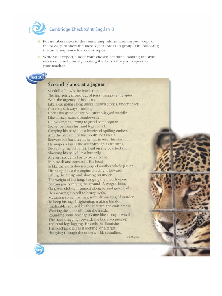 The poem Second Glance at a Jaguar focusses on the animal itself. This lesson suggests useful vocabulary and language techniques for the poem sets comprehension questions explains the speaker and situation and. The latter lacks the co-ordination and conventional form of the former poem.