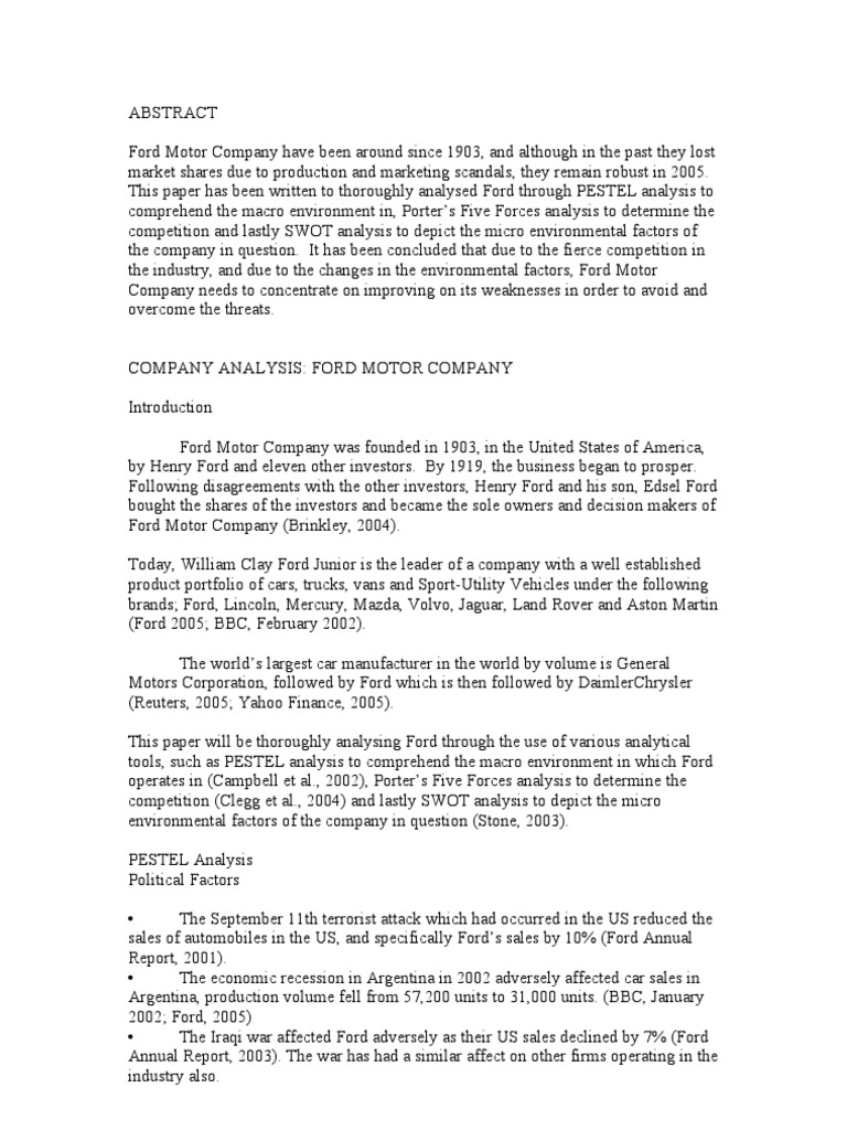 Fords Case Analysis Ford Motor Company General Motors